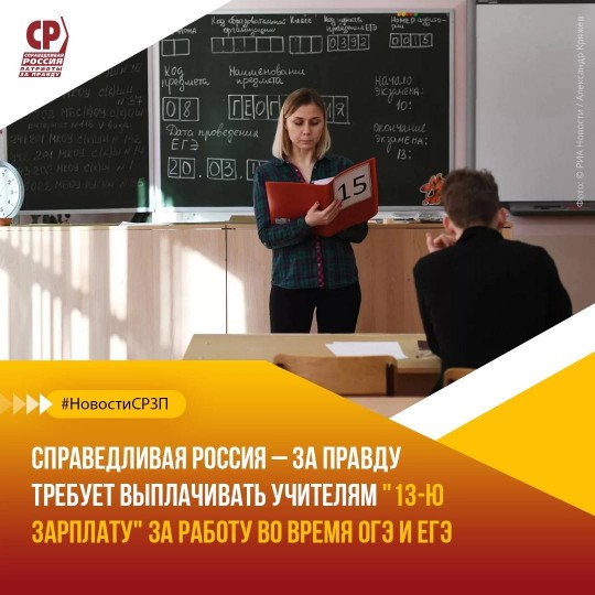 📩 СПРАВЕДЛИВАЯ РОССИЯ – ЗА ПРАВДУ предлагает установить федеральную фиксированную выплату учителям за работу во время ОГЭ и ЕГЭ в размере среднемесячного заработка. Это должна быть "13-я зарплата", которая позволит компенсировать педагогам тяжёлые условия труда в дни экзаменов. Официальное письмо по данному вопросу направлено Председателю Правительства РФ Михаилу Мишустину.