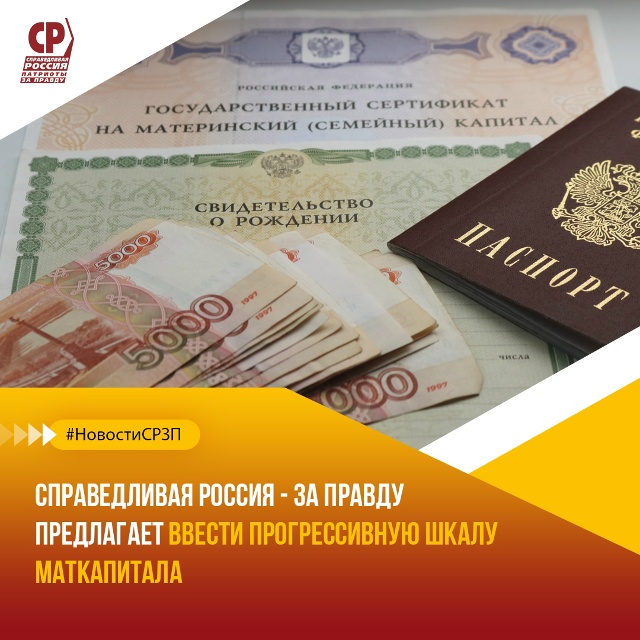☝ СПРАВЕДЛИВАЯ РОССИЯ – ЗА ПРАВДУ предлагает ввести прогрессивную шкалу маткапитала: